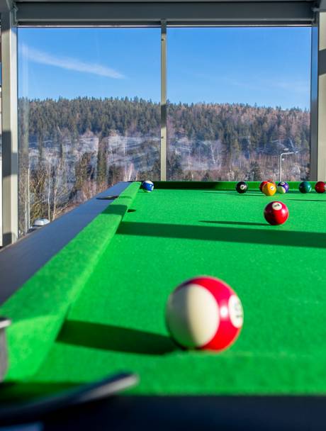 Idealne miejsce dla wszystkich Gości - tych młodszych, jak i starszych. W przeszklonej arenie, z malowniczym widokiem można pograć w:
